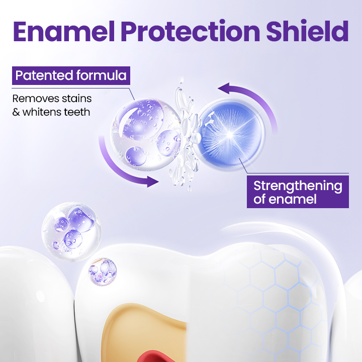 Patented formula strengthens tooth enamel while whitening, preventing future stains and sensitivity